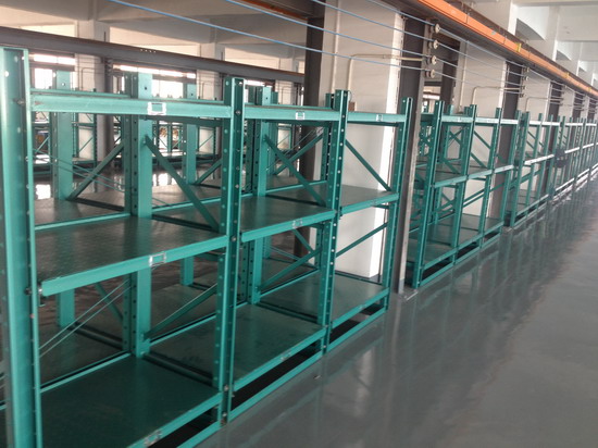 模具都是比較重(chóng)的,有些時候為了從(cóng)成本考慮,也有客戶使用重型貨架來擺放模(mó)具,使用叉車來搬運。這樣操作方式(shì),效率比較低,而且取下正在使用中的模具時,比較麻煩,容易(yì)損傷模具(jù)。